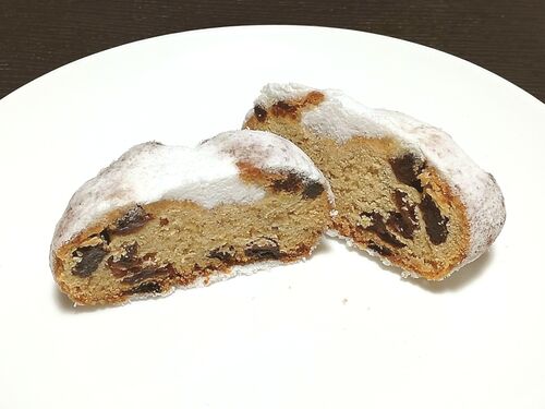 なめらかプリンで有名なパステルのシュトレンです。価格は税込324円。内容量は45.0g。長さ6.0cm、幅4.5cm、高さ2.8cm。 パッケージ。手のひらにころんと収まり、配りたくなる可愛らしさです。 品質表示。レーズン食パンのような香りで、アルコール感はありま…