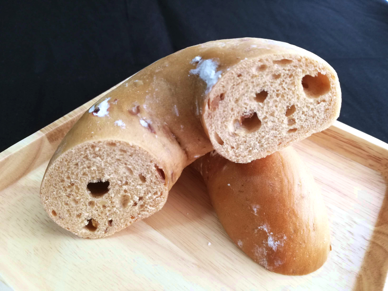 フィリングは少なめで、レーズン、クルミ、オレンジピール。